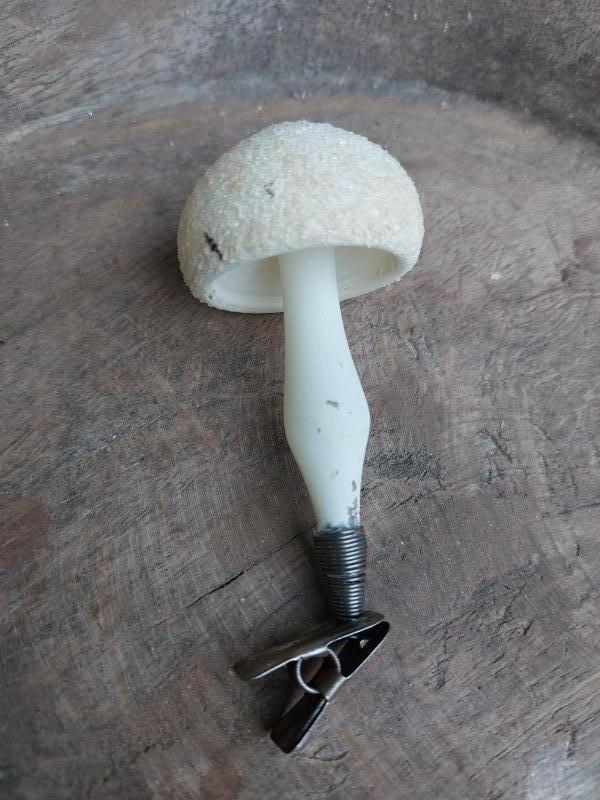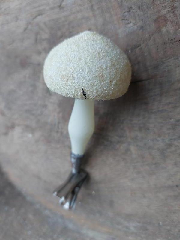Prachtige antieke gesuikerde paddenstoel op knijper. (glas)