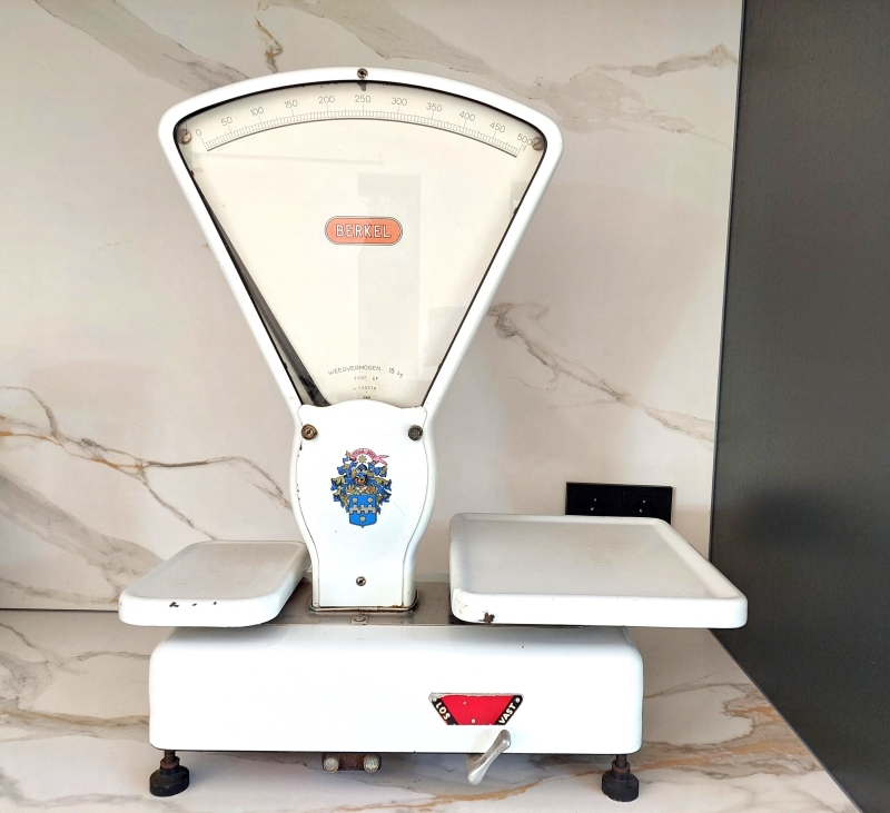 Mooi vintage exemplaar, leuk als stoer item in de keuken of als decoratie object in een restaurant/bakker/slager etc.