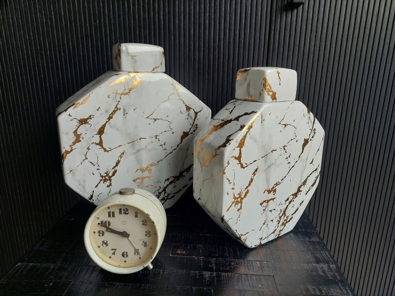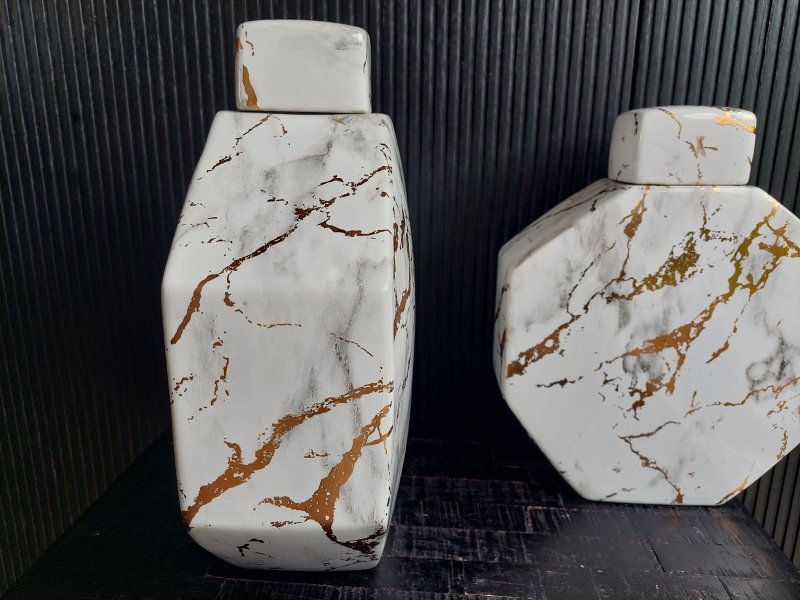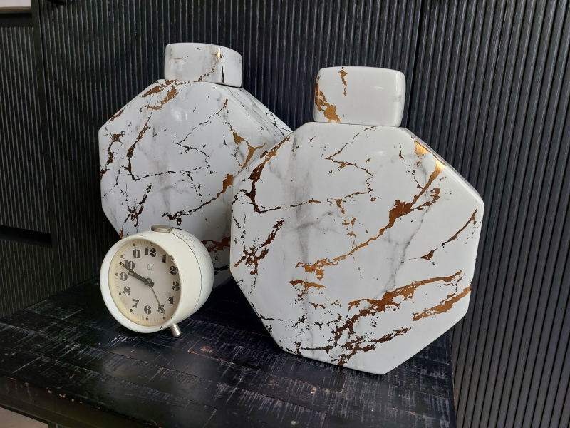 Prachtige porseleinen fles in goud/marmer patroon (nieuw)