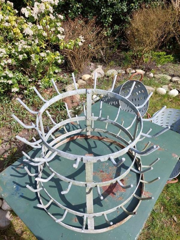 Hoogte: 38 cm, Diameter: 52 cm (gemeten op de pennen, breedste punt)