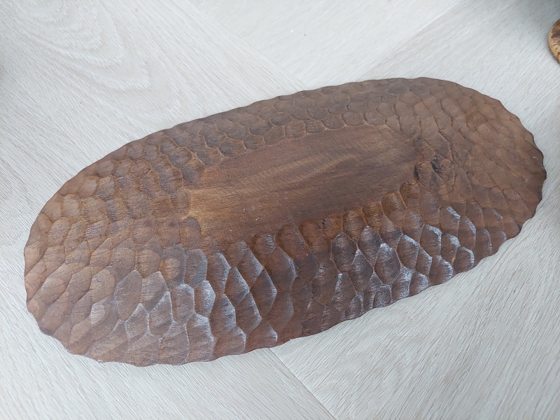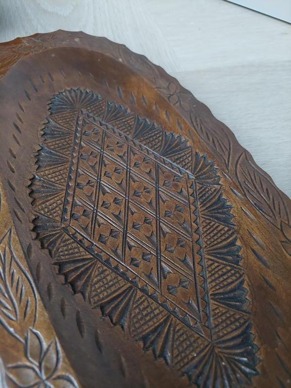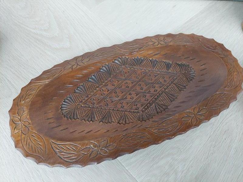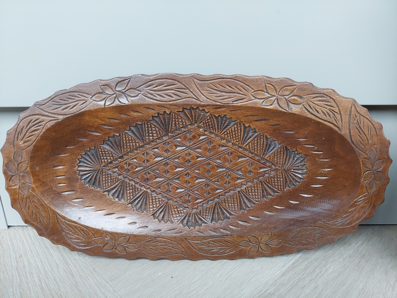 Vintage donkere schaal ovaal, houtsnijwerk.