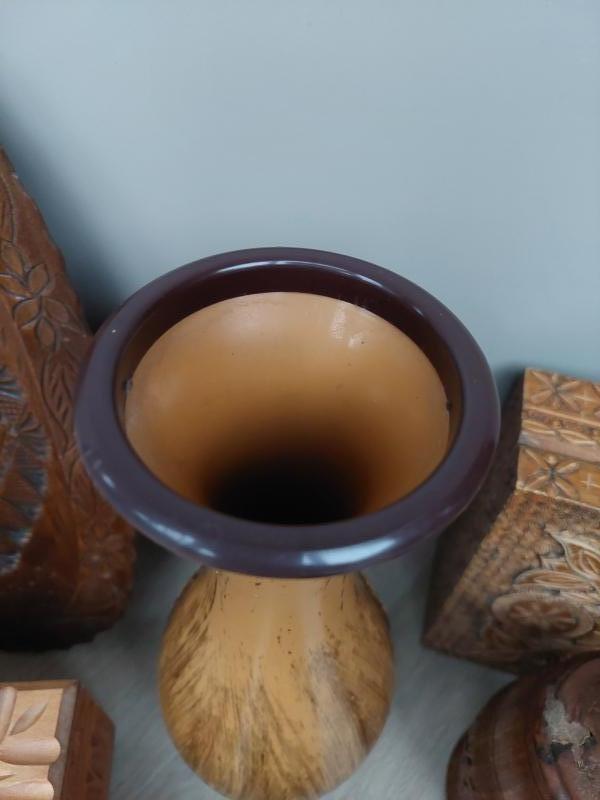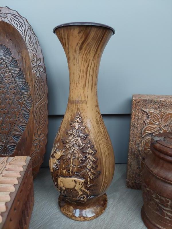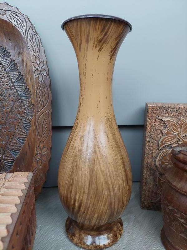 De vaas is houtlook, materiaal: kunststof.